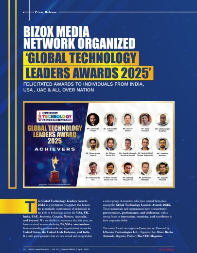 The Global Technology Leaders Award 2026 a prestigious Award that truly values the contributions of individuals and companies in the field of Technology Industry from USA, UK, India, UAE, Armenia, Canada, Mexico, Australia & all over the world. All final winners of the Global Technology Leaders Award 2026 have the opportunity to get the Award Certificate, Trophy, and use the Exclusive Rights in advertising promotions, official stationery, website, etc. It is a best platform for all Technology Leaders where we Honouring, Achieving, Marketing and Advertising services through online media in the field of Technology Industry.